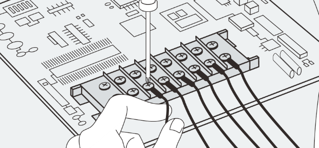 (*)用一字螺丝刀按下操作杆即可解除接线,轻松更换电缆