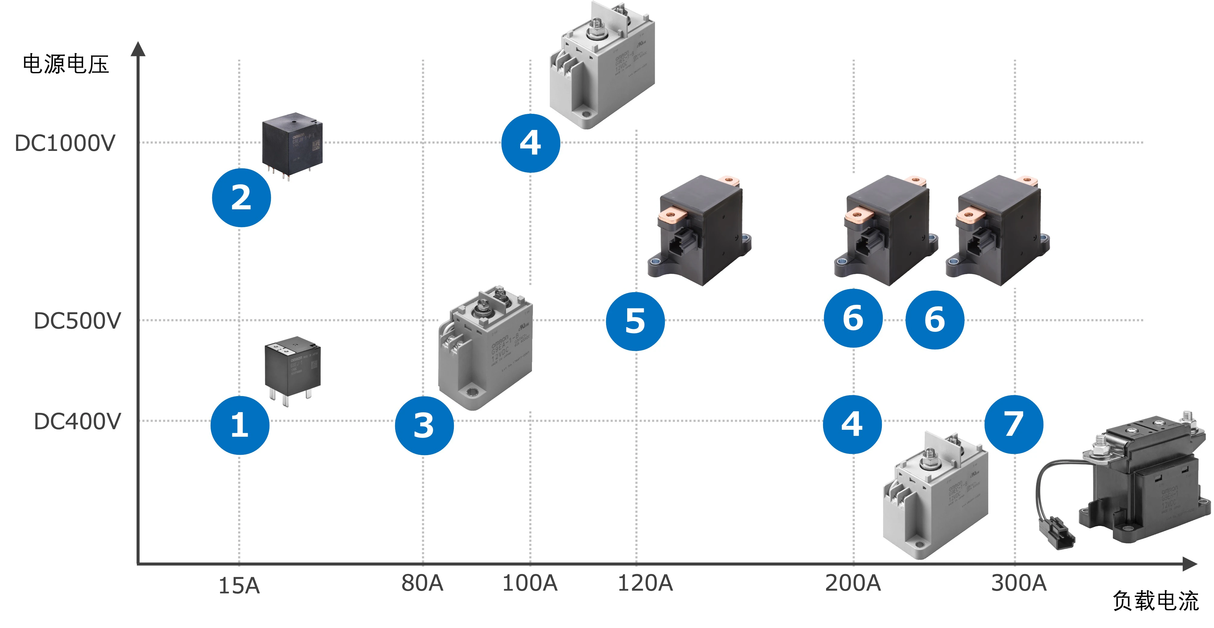 (参考)欧姆龙大容量DC继电器主要产品阵容(按额定负载)