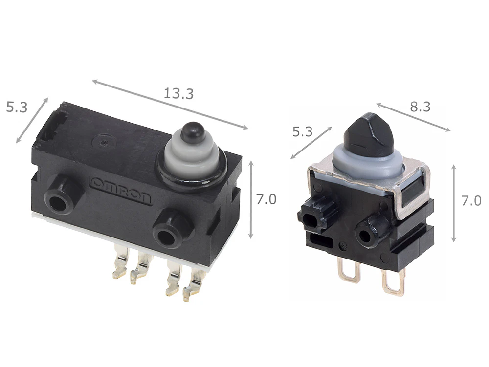 这是一款可以从上方和左右侧进行操作的小型微动开关,有助于将检测机构最小化。