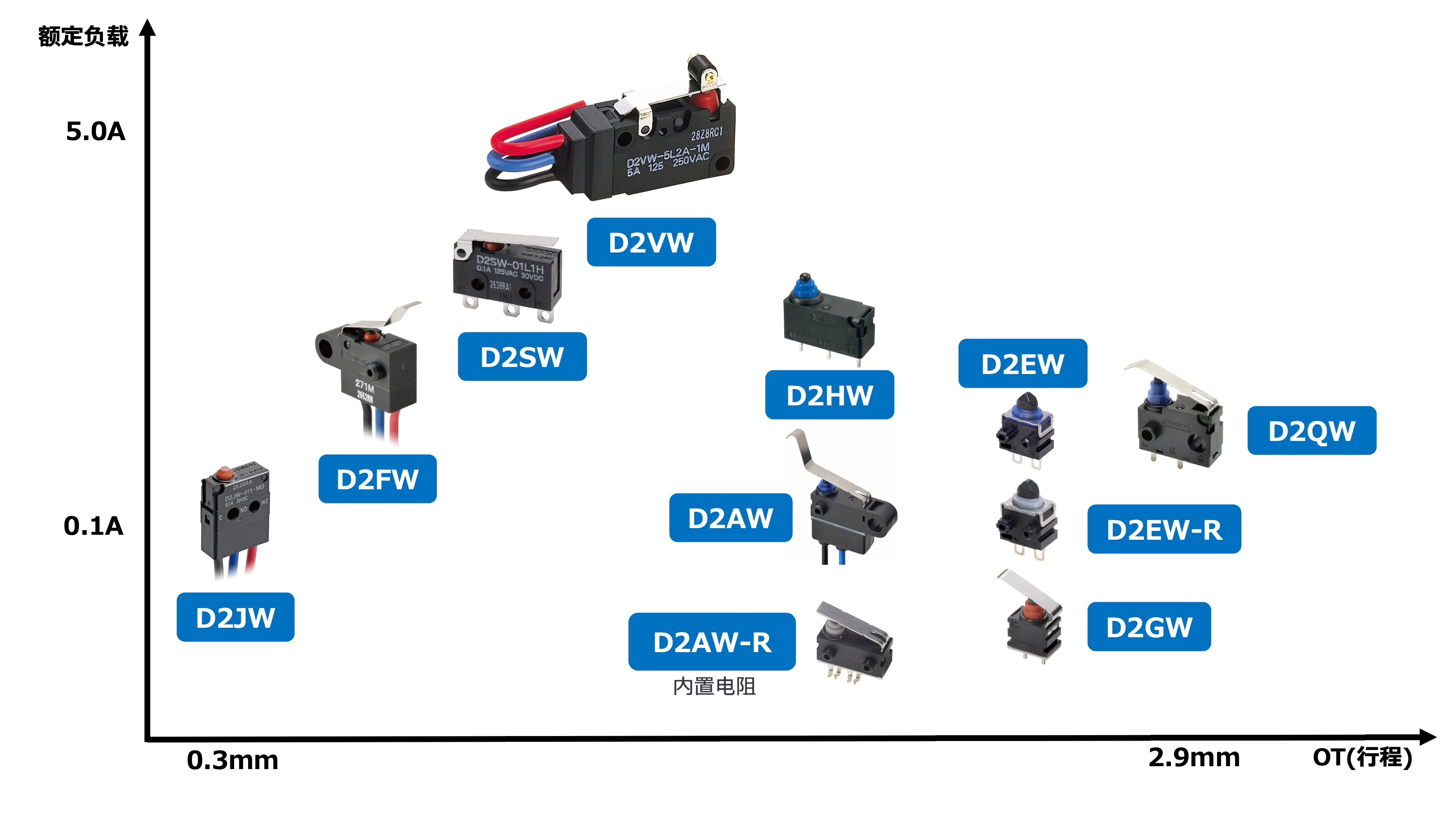(参考)欧姆龙密封微动开关主要产品阵容(按额定负载×行程)