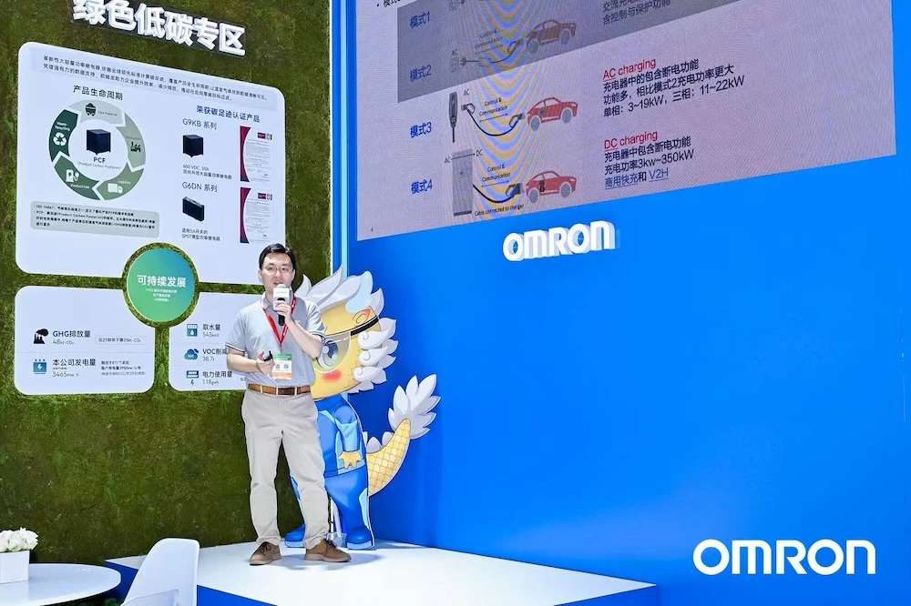 展会现场,欧姆龙专家团队还带来了两场聚焦绿色可持续发展的重磅主题演讲, 演讲主题分别为《欧姆龙产品助力新能源发展》及《欧姆龙产品助力充电桩行业发展》,内容涵盖了欧姆龙产品在提升能源效率、优化资源利用方面的有效成果与成功实践,这两场演讲,为线上及线下的观众和行业同仁提供了宝贵的洞见与启发,彰显了欧姆龙以技术创新赋能绿色未来的坚定承诺与实力担当。