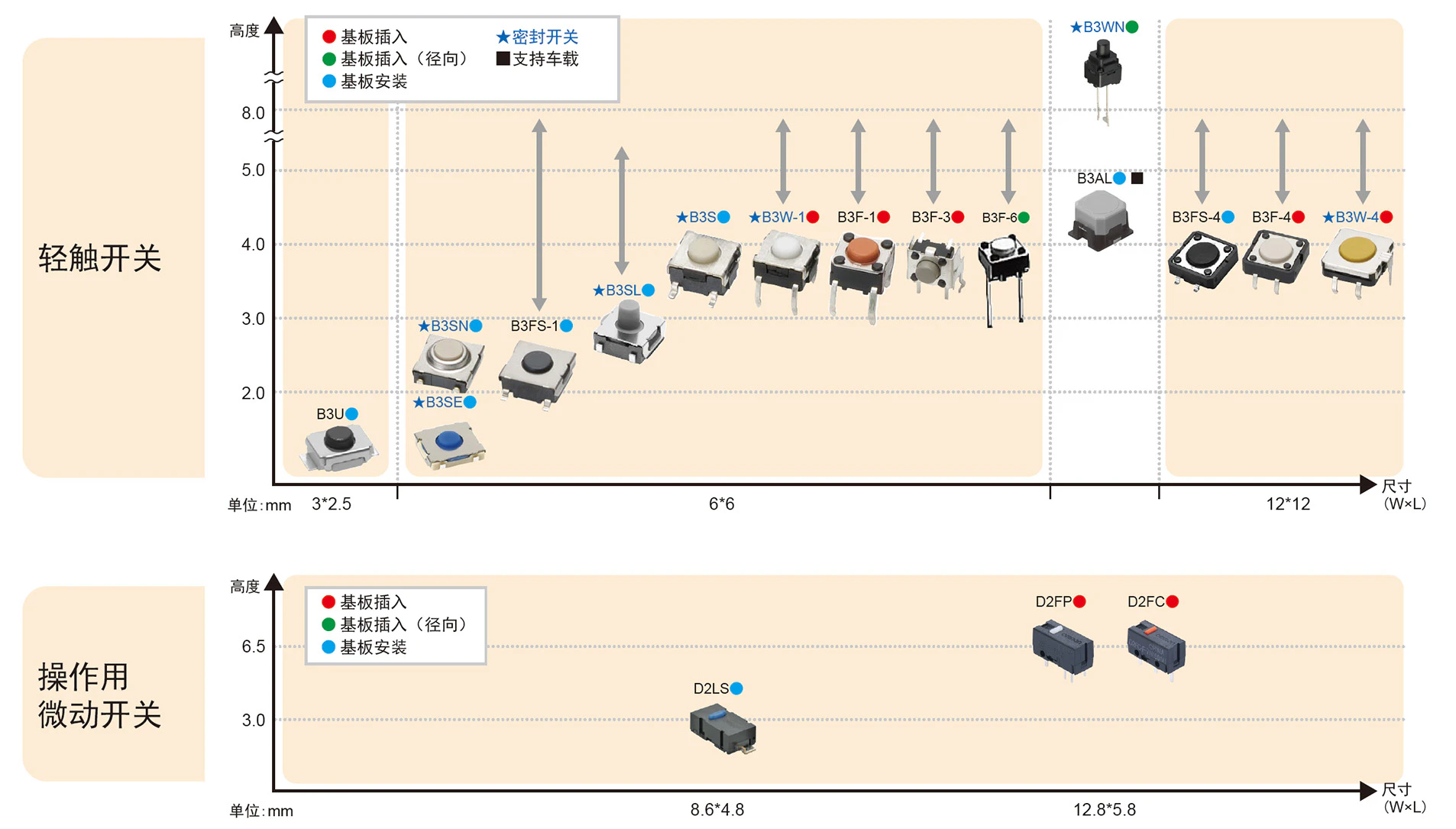 6×6mm | 3.1mm 4.3mm 4.9mm 7.0mm 7.3mm |
