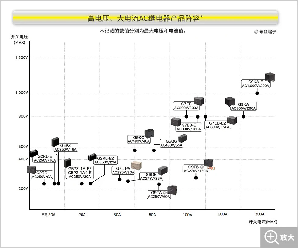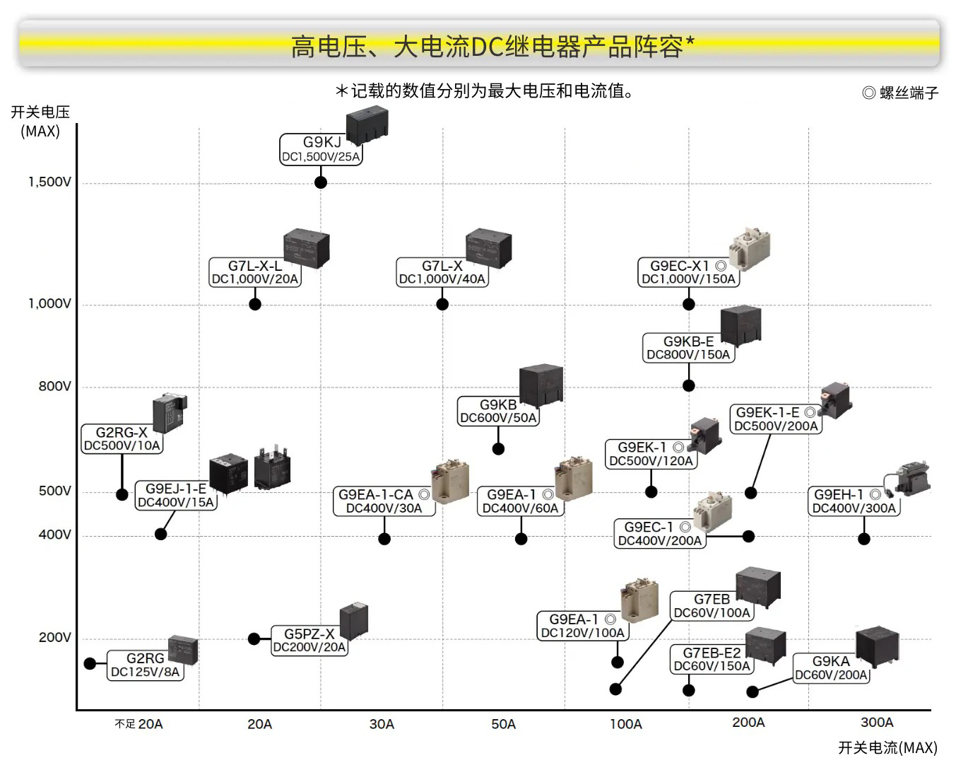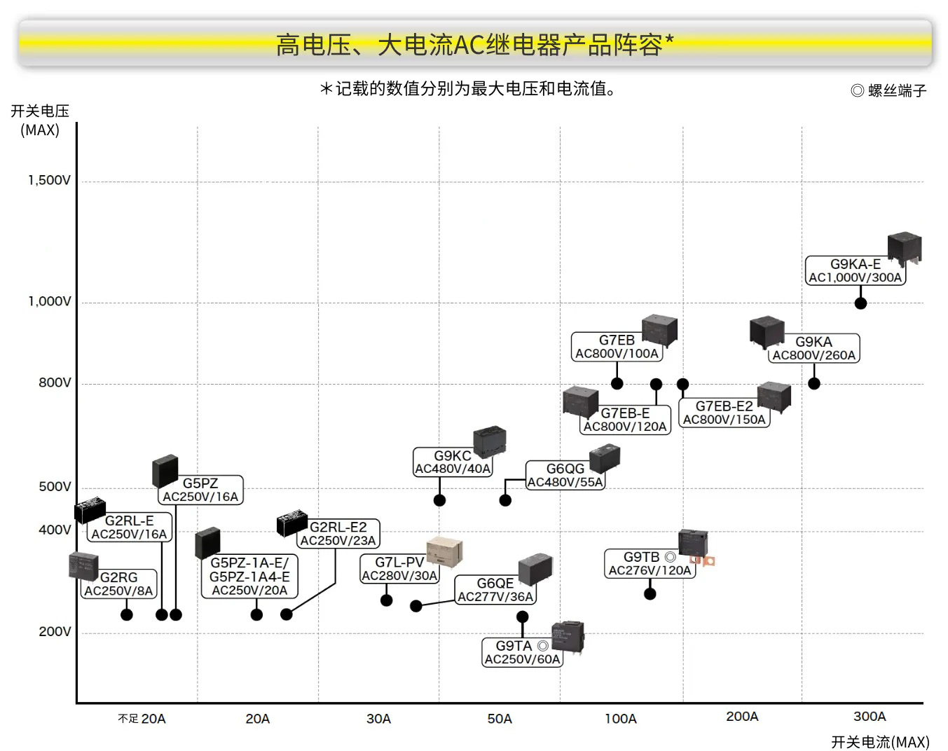 例如欧姆龙的PCB继电器,就可覆盖~AC/DC1000V、~300A的电流和电压领域。